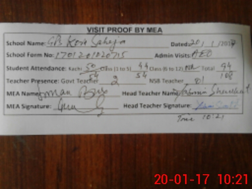 | EMIS Code: 32430205 | Name of School: GPS KORA SAHEJA | |||