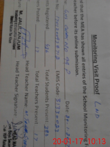 | EMIS Code: 31330023 | Name of School: GHS CHAK NO. 99/P | |||