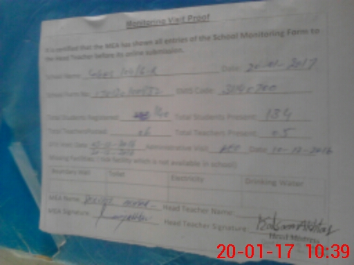 | Certified that this School was Inspected by the Undersigned MEA/DMO Today and the Information Stated Above is as Per Record. | |||||