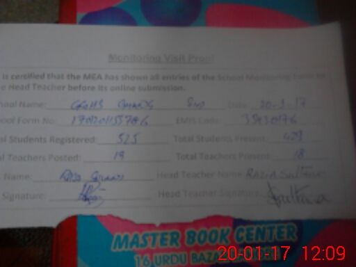 | Certified that this School was Inspected by the Undersigned MEA/DMO Today and the Information Stated Above is as Per Record. | |||||