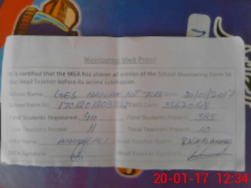 | EMIS Code: 35620148 | Name of School: GES NAWAN KOT CHAK NO. 79/RB | |||