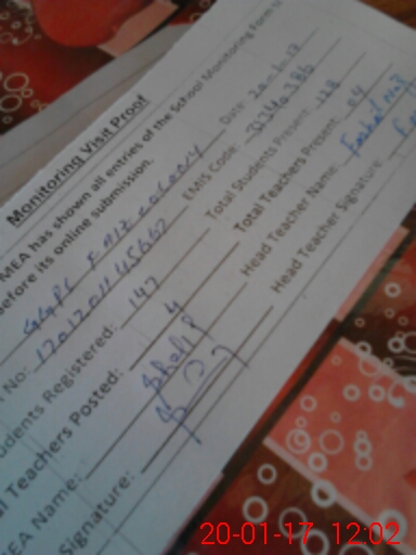 | Attendance Register | Head Teacher | MEA with School | Visit Proof |