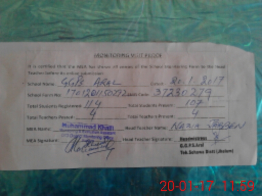 | EMIS Code: 37230279 | Name of School: GGPS ARAL | |||
