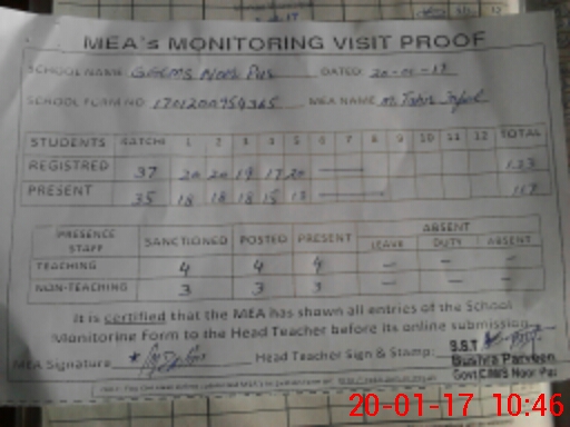 | Attendance Register | Head Teacher | MEA with School | Visit Proof |