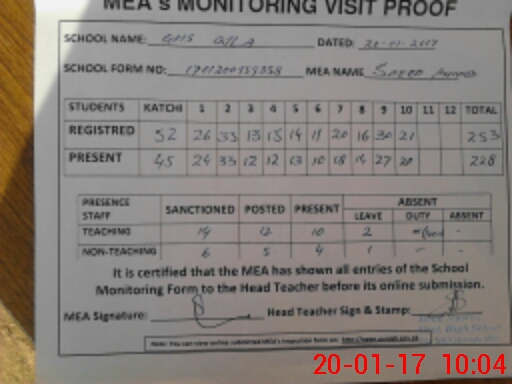 | Attendance Register | Head Teacher | MEA with School | Visit Proof |