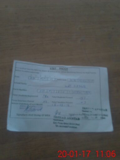| Attendance Register | Head Teacher | MEA with School | Visit Proof |