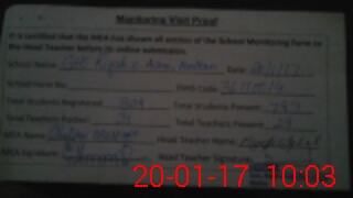 | Attendance Register | Head Teacher | MEA with School | Visit Proof |