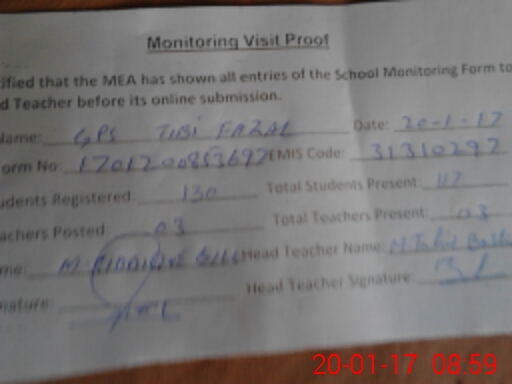 | EMIS Code: 31310297 | Name of School: GPS TIBI FAZIAL WALA | |||