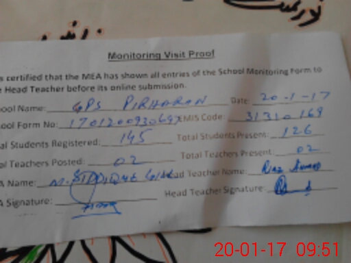 | EMIS Code: 31310169 | Name of School: GPS BASTI PIRHARAN | |||