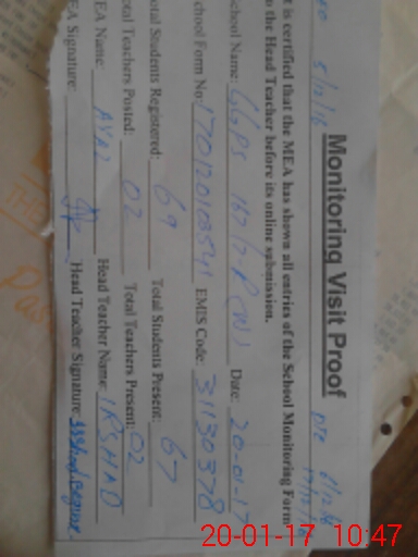 | Attendance Register | Head Teacher | MEA with School | Visit Proof |