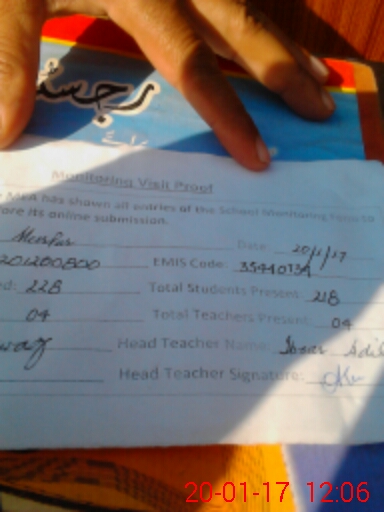 | Attendance Register | Head Teacher | MEA with School | Visit Proof |