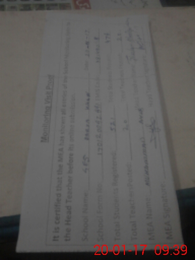 | Attendance Register | Head Teacher | MEA with School | Visit Proof |
