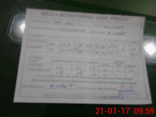 | Attendance Register | Head Teacher | MEA with School | Visit Proof |