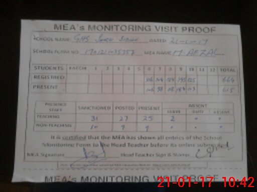 | Certified that this School was Inspected by the Undersigned MEA/DMO Today and the Information Stated Above is as Per Record. | |||||