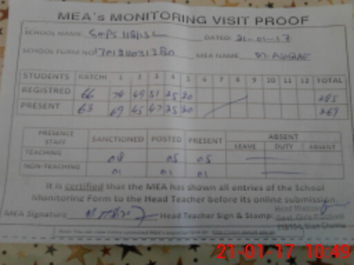 | Certified that this School was Inspected by the Undersigned MEA/DMO Today and the Information Stated Above is as Per Record. | |||||