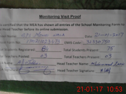 | EMIS Code: 32330750 | Name of School: GPS MONGI WALA | |||