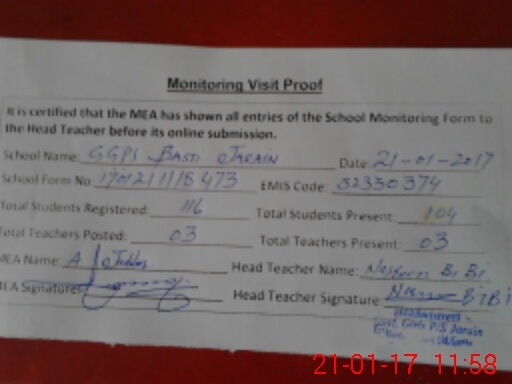 | EMIS Code: 32330374 | Name of School: GGPS BASTI JARAIN | |||