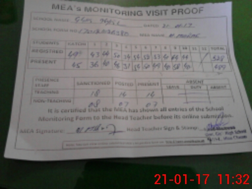 | Attendance Register | Head Teacher | MEA with School | Visit Proof |