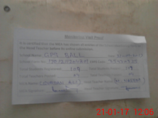 | EMIS Code: 35430325 | Name of School: GPS BALL | |||