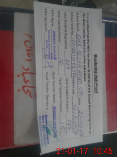 | EMIS Code: 36120017 | Name of School: GHS ALLAH ABAD SHUJABAD | |||