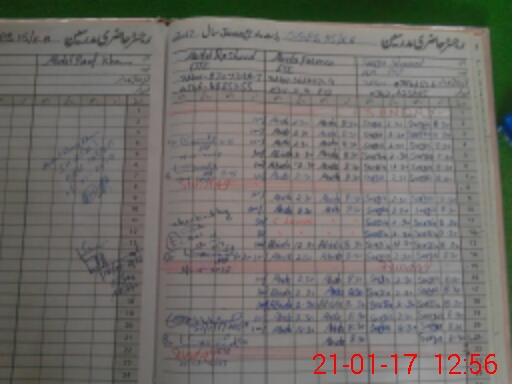 | CNIC | Full Name | Designation | R/C | Absence During Last Calender Month |