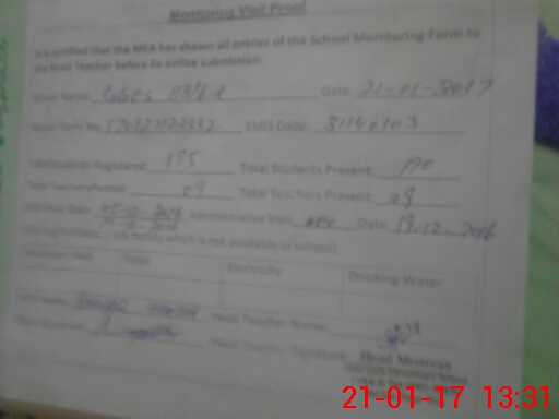 | Certified that this School was Inspected by the Undersigned MEA/DMO Today and the Information Stated Above is as Per Record. | |||||