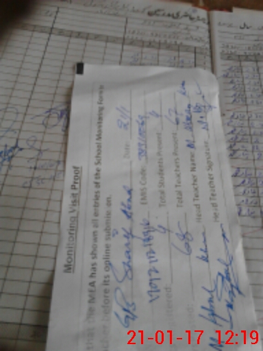 | School Visited by School Health & Nutrition Supervisor (No. of Visits) | 1 | Name1: | Mushtaq Ahmed | Name2: | |