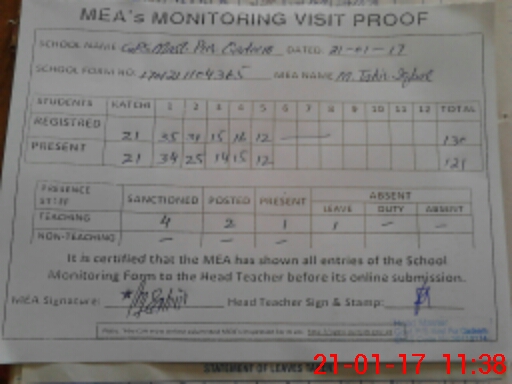 | Attendance Register | Head Teacher | MEA with School | Visit Proof |