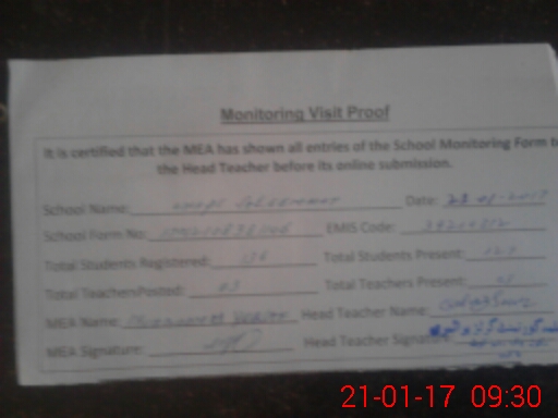 | EMIS Code: 39210312 | Name of School: GGPS SALEEM KOT | |||