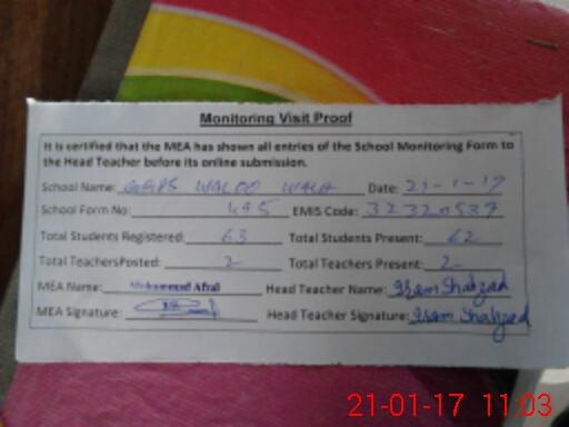 | EMIS Code: 32320539 | Name of School: GGPS WALOO WALA | |||