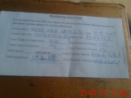 | EMIS Code: 32310225 | Name of School: GGPS HAJI GHALOO | |||