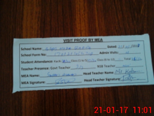 | Attendance Register | Head Teacher | MEA with School | Visit Proof |