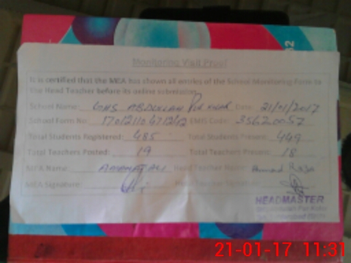 | EMIS Code: 35620057 | Name of School: GHS ABDULLAH PUR KULAR SAFDER ABAD | |||