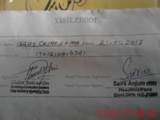 | EMIS Code: 38230880 | Name of School: GGHS CHAK NO 26 MB | |||