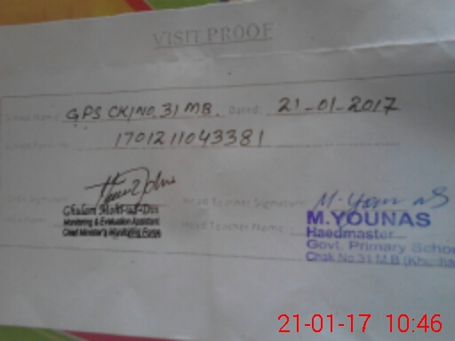 | EMIS Code: 38230468 | Name of School: GPS CHAK NO. 31 MB | |||