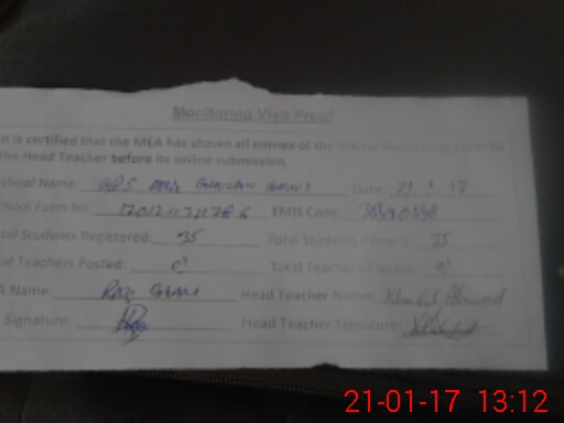 | Attendance Register | Head Teacher | MEA with School | Visit Proof |