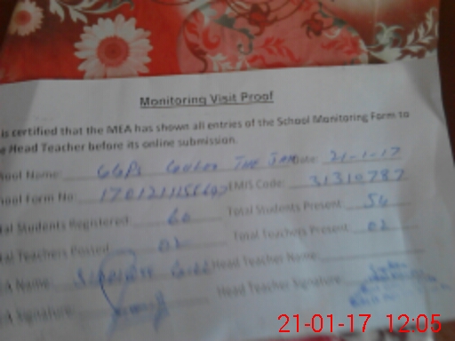 | Attendance Register | Head Teacher | MEA with School | Visit Proof |