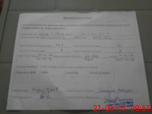 | Certified that this School was Inspected by the Undersigned MEA/DMO Today and the Information Stated Above is as Per Record. | |||||