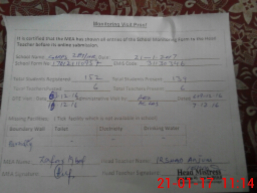 | Certified that this School was Inspected by the Undersigned MEA/DMO Today and the Information Stated Above is as Per Record. | |||||