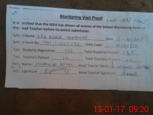 | EMIS Code: 31320212 | Name of School: GPS ASHIQ MUHAMMAD (GABOOL) | |||