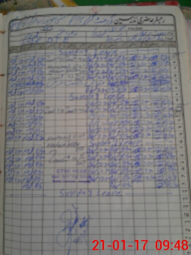 | CNIC | Full Name | Designation | R/C | Absence During Last Calender Month |