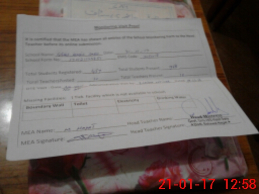 | Attendance Register | Head Teacher | MEA with School | Visit Proof |