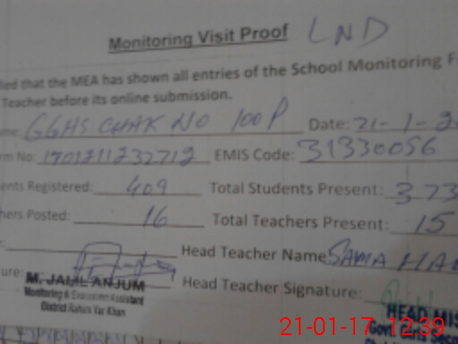 | EMIS Code: 31330056 | Name of School: GGHS CHAK NO. 100/P | |||