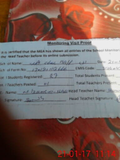 | Attendance Register | Head Teacher | MEA with School | Visit Proof |