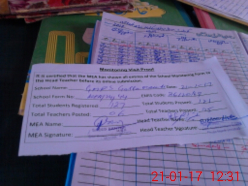 | Attendance Register | Head Teacher | MEA with School | Visit Proof |