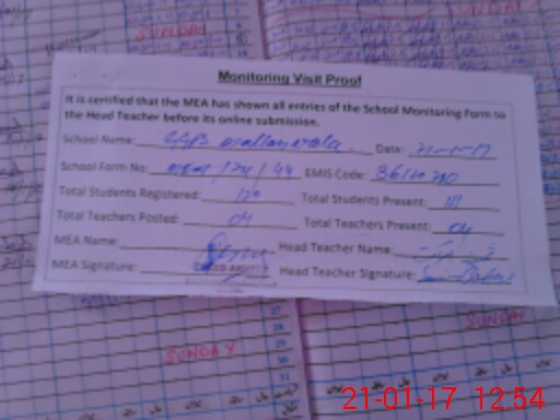 | Attendance Register | Head Teacher | MEA with School | Visit Proof |