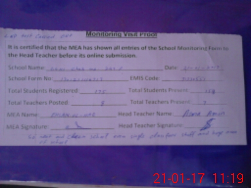 | Attendance Register | Head Teacher | MEA with School | Visit Proof |