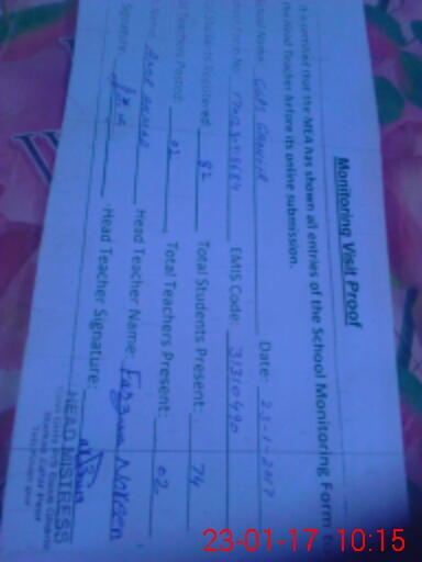 | School Visited by School Health & Nutrition Supervisor (No. of Visits) | 1 | Name1: | Sohail Munir | Name2: | Nil |