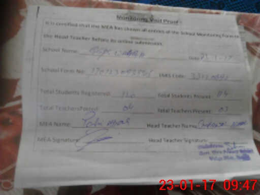 | Attendance Register | Head Teacher | MEA with School | Visit Proof |