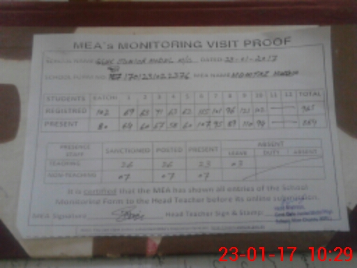 | Attendance Register | Head Teacher | MEA with School | Visit Proof |
